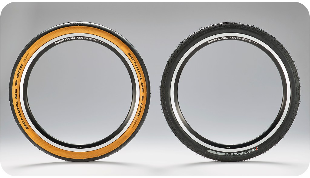 To Joe, “Bromptons are built for those who work smart and play really hard. Since so much is riding on the rims, it must be tougher than all terrain and season”. We had to push the limits to meet Joe’s very high standards. The new A22C 349 grips the road tighter while providing more tire surface. It can carry a heavier load and absorb more impacts than humanly possible while staying cool up at temperatures up to 2300°C (yes, twenty-three hundred degrees Celsius!) thanks to our unique Al+Mn+Nb alloy in fusion T10. “Rims must outlast Brompton frame”, said Joe so we upped the tensile strength to over 600Kgs. We even added the production year on each rim so that we can track how long the A22C ultimately lasts!