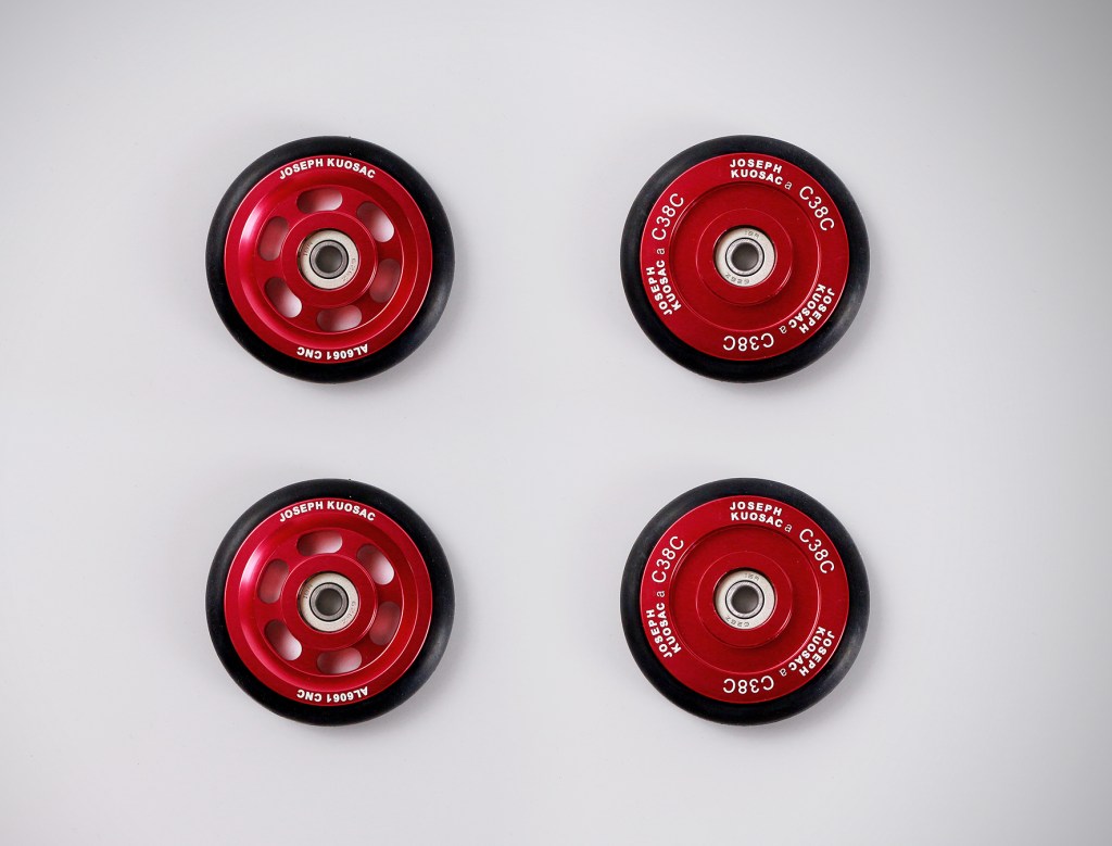 “这只是用来在地铁站附近推自行车,或者从大堂到我的办公桌……没什么大不了的。” 他的朋友边喝着喜力啤酒边说。”是的,你说得对,但我的生活充满激情。” Joe Kuo答道,然后喝了一口喜力啤酒。Joe Kuo说:”Brompton 触及专业和个人领域的方方面面,它值得用最好的部件,即便是最简单最微小的应用。” 因此,Joe Kuo设计的车轮使用工业级轴承和坚韧的 O 形圈,并称其为易行轮,这并非比原装款简化,而是更为专业级的。